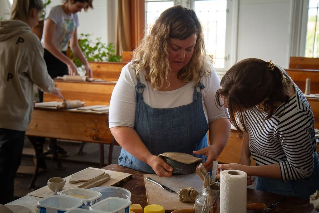 I teach handbuilding and glazing and try to always give you a full experience. From tasty snacks to a little bit of therapy - I am here for it all and absolutely love sharing it with all of you guys!